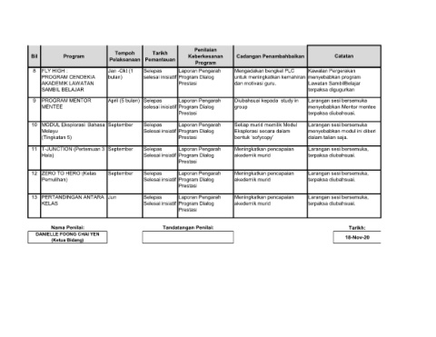 Nama Penilai: Tandatangan Penilai: Tarikh: