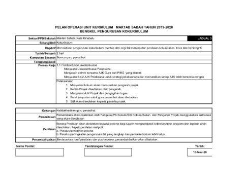 Nama Penilai: Tandatangan Penilai: Tarikh: