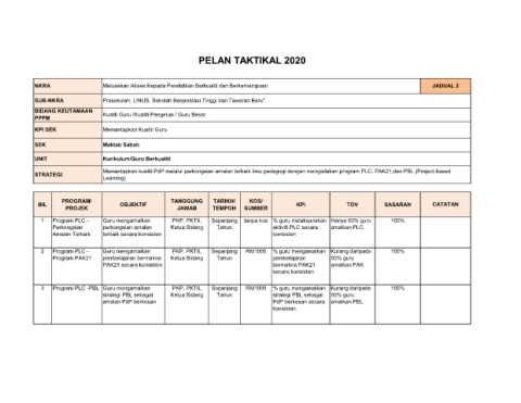 1 Program PLC - Guru mengamalkan PKP, PKT6, Sepanjang tanpa kos % guru melaksanakan Hanya 50% guru 100%
