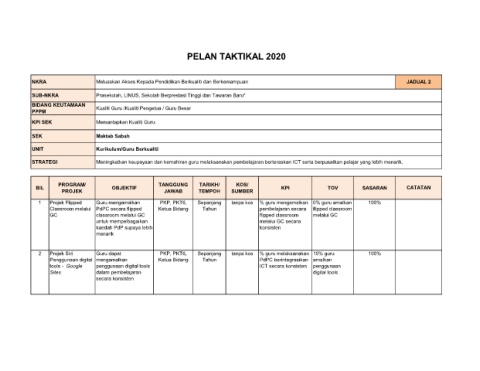PELAN TAKTIKAL 2020