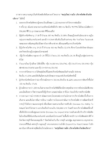 1. ยอดการบริจาคโลหิตจากผู้ลงทะเบียนทั้งหมด 1,121 คนจากการทำโครงการต่อเนื่อง