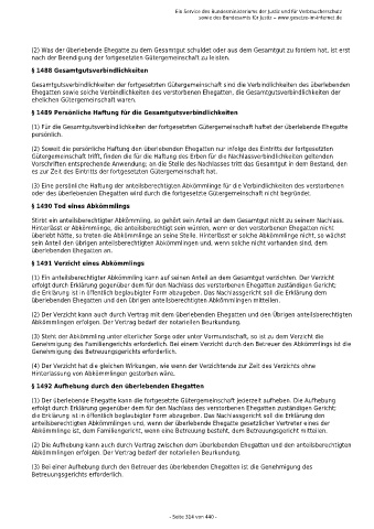 (1) Für die Gesamtgutsverbindlichkeiten der fortgesetzten Gütergemeinschaft haftet der überlebende Ehegatte
