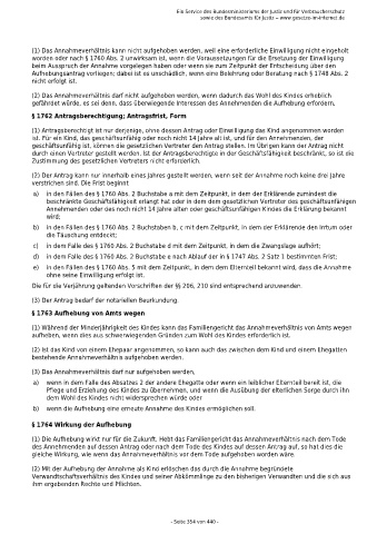 (1) Während der Minderjährigkeit des Kindes kann das Familiengericht das Annahmeverhältnis von Amts wegen