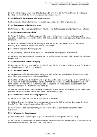 (1) Wer durch Verfügung von Todes wegen als Erbe berufen ist, kann, wenn er ohne die Verfügung als