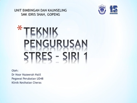 UNIT BIMBINGAN DAN KAUNSELING SMK IDRIS SHAH, GOPENG * Oleh: Dr Noor Nazeerah Halil Pegawai Perubatan UD48 Klinik Kesihatan Cheras