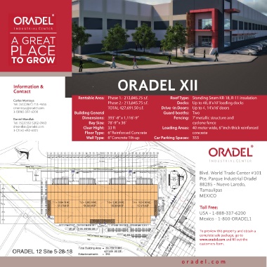 cmontoya@oradel.com Rentable Area: Phase 1.- 213,845.75s.f. ORADEL XII thick reinforced