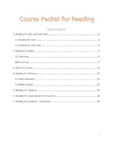1. Reading for topic and main idea ............................................................................................... 2