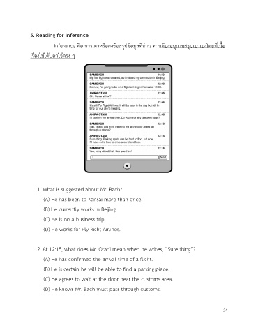 Inference คือ การเดาหรือลงขอสรุปขอมูลที่อาน ทานตองอนุมานสรุปเอาเองโดยที่เนื้อ