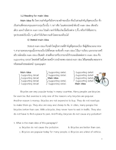 supporting detail โดยปกติ ในเนื้อความหนึ่งๆ เรามักจะพบ stated main idea ไดในตอนตน ตอนกลาง