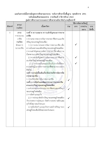 แผนวิเคราะห์เนื้อหาหลักสูตรการศึกษานอกระบบ ระดับการศึกษาขั้นพื้นฐาน พุทธศักราช 2551