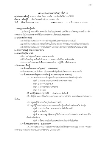 แผนการจัดกระบวนการเรียนรู้ ครั้งที่ 15