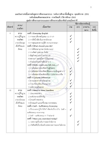 แผนวิเคราะห์เนื้อหาหลักสูตรการศึกษานอกระบบ ระดับการศึกษาขั้นพื้นฐาน พุทธศักราช 2551