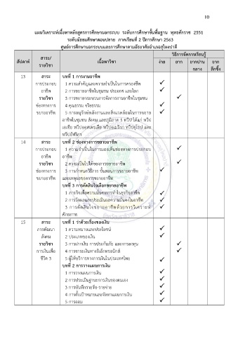 แผนวิเคราะห์เนื้อหาหลักสูตรการศึกษานอกระบบ ระดับการศึกษาขั้นพื้นฐาน พุทธศักราช 2551