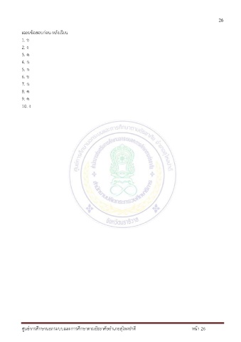 26 เฉลยข้อสอบก่อน-หลังเรียน 1. ข 2. ง 3. ค 4. ก 5. ก 6. ข 7. ก 8. ค 9. ค 10. ง ึ ศูนย์การศกษานอกระบบและการศึกษาตามอัธยาศัยอำเภอสุไหงปาดี หน้า 26