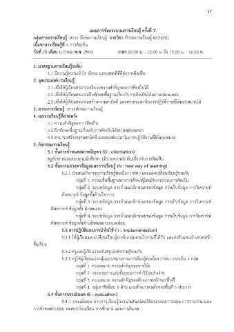 แผนการจัดกระบวนการเรียนรู้ ครั้งที่ 7
