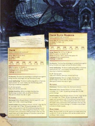 1 0 (+O) 14 (+2) 1 0 (+O) 1 1 (+O) 11 (+O) 12 (+l) Fey Ancestry. The drow has advantage on saving throws against