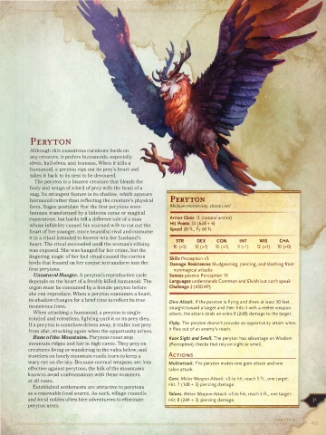 U n natural Hunger. A peryton's reproductive cycle Senses passive Perception 1 5