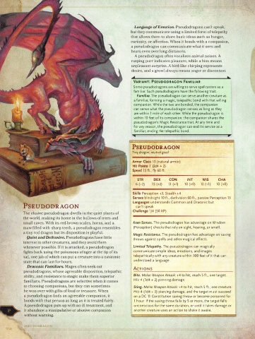 familiars. Pseudodragons are selective when it comes Hit: 4 (ld4 + 2) piercing damage.