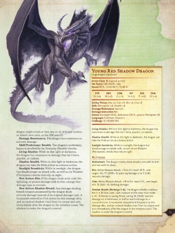 Damage Resistances. The dragon has resistance to Shadow Stealth. While in dim light or darkness, the r agon can