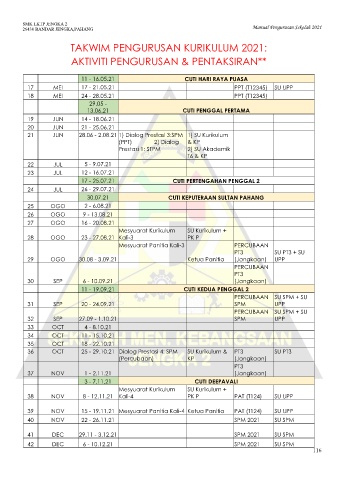 TAKWIM PENGURUSAN KURIKULUM 2021: