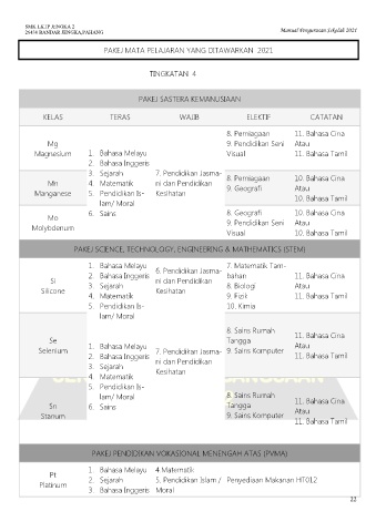 PAKEJ MATA PELAJARAN YANG DITAWARKAN 2021