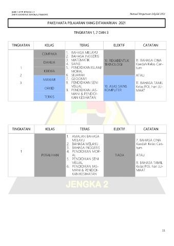 PAKEJ MATA PELAJARAN YANG DITAWARKAN 2021