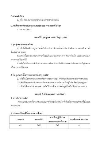 รายละเอียดของรายวิชา (มคอ.3) 8. สถานที่เรียน