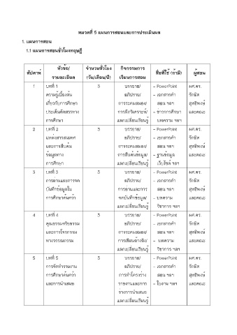 หมวดที่ 5 แผนการสอนและการประเมินผล