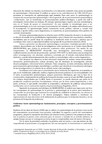 parte, acríticas, lo que puede convalidar la aceptación y afirmación de políticas educacionales