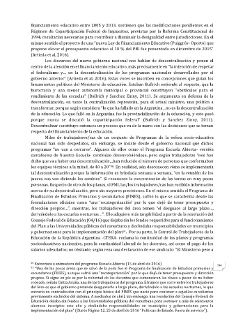 financiamiento educativo entre 2005 y 2013, sostienen que las modificaciones pendientes en el