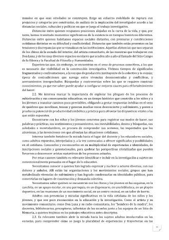escuelas, para comprender cómo se juega la pluralidad de experiencias y trayectorias en las