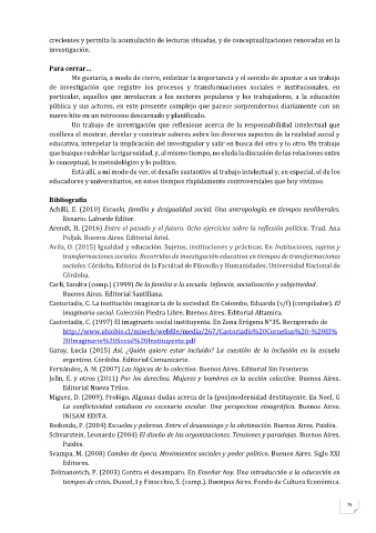 crecientes y permita la acumulación de lecturas situadas, y de conceptualizaciones renovadas en la