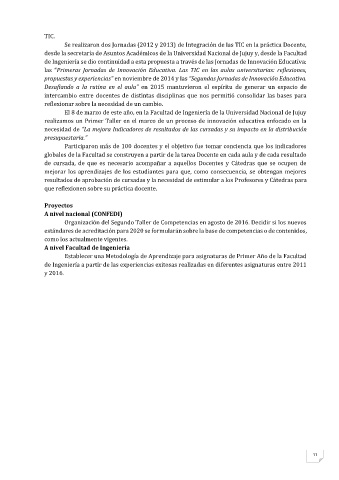 de Ingeniería se dio continuidad a esta propuesta a través de las Jornadas de Innovación Educativa: