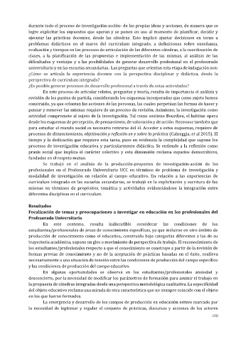 profesionales en el Profesorado Universitario UCC en términos de problema de investigación y