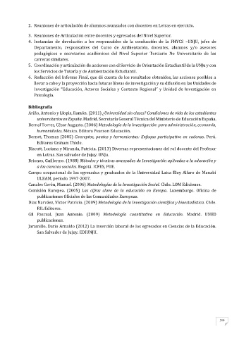 2. Reuniones de articulación de alumnos avanzados con docentes en Letras en ejercicio.
