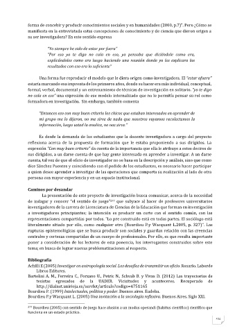 277 Bourdieu (2005) con sentido de juego hace alusión a un modus operandi (habitus científico) científico que