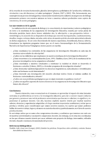 en torno a la enseñanza de las asignaturas de Investigación Educativa, transita por varias pistas de