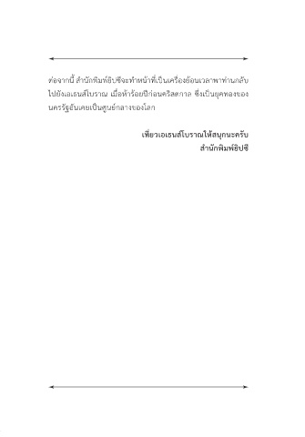 � � ื ี ต่อจากน้ สานักพิมพ์ยิปซีจะทาหน้าท่เป็นเคร่องย้อนเวลาพาท่านกลับ ี ึ ื ไปยังเอเธนส์โบราณ เม่อห้าร้อยปีก่อนคริสตกาล ซ่งเป็นยุคทองของ นครรัฐอันเคยเป็นศูนย์กลางของโลก เท่ยวเอเธนส์โบราณให้สนุกนะครับ ี � สานักพิมพ์ยิปซ ี