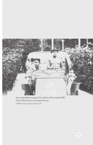 ั พระบาทสมเด็จพระมงกุฎเกล้าเจ้าอยู่หัวทรงขับรถยนต์พระที่น่ง ด้านข้างคือเจ้าพระยารามราฆพและย่าเหล ภาพจาก www.silpa-mag.com 17