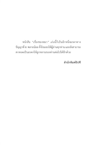 ื ี ึ หนังสือ “เร่องของหมา” เล่มน้ก็เป็นอีกหน่งมรดกทาง ปัญญาท่ ส. พลายน้อย ต้งใจมอบให้ผู้อ่านทุกท่าน และยังสามารถ ั ี ตกทอดเป็นมรดกให้ลูกหลานของท่านต่อไปได้อีกด้วย � สานักพิมพ์ยิปซ ี