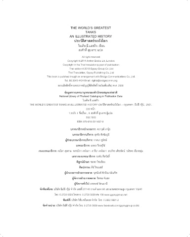 THE WORLD’S GREATEST TANKS AN ILLUSTRATED HISTORY ประวัติศาสตรรถถังโลก.-- กรุงเทพฯ : ยิปซี กรุป, 2561.