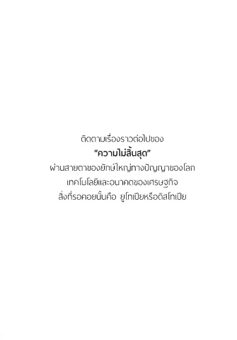 ่ ติดตามเรองราวต่อไปของ ื “ความไม่ส้นสุด” ิ ั ผ่านสายตาของยักษ์ใหญ่ทางปญญาของโลก เทคโนโลยีและอนาคตของเศรษฐกิจ ่ ่ ี ี ู ิ ี สงทรอคอยน้นคือ ยโทเปยหรือดิสโทเปย ั