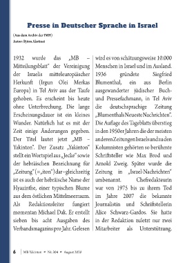 Mitteilungsblatt“ der Vereinigung Menschen in Israel und im Ausland.