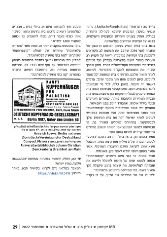 מטבע חוץ לחברתנו מיום 24ביולי ,..1933מהגרים ב"יידישה רונדשאו" ( ,)JudischeRundschauעיתון