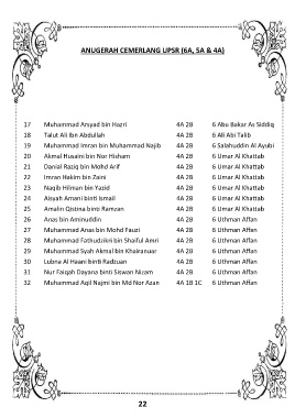 22 Imran Hakim bin Zaini 4A 2B 6 Umar Al Khattab