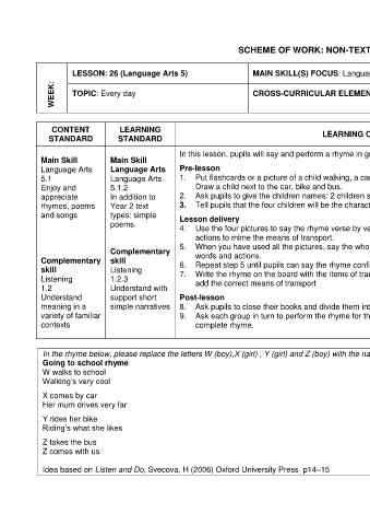 skill Listening 7. Write the rhyme on the board with the items of transport missing. Ask pupils to copy the rhyme and