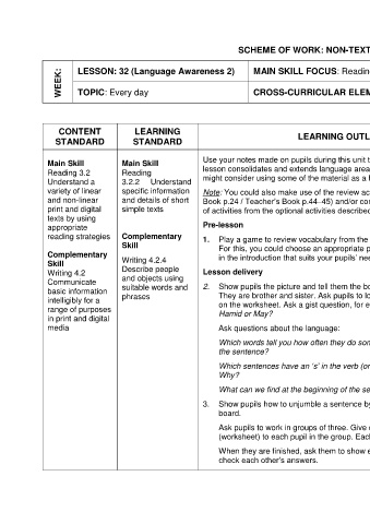 WEEK: LESSON: 32 (Language Awareness 2) MAIN SKILL FOCUS: Reading THEME: World of Self, Family and Friends