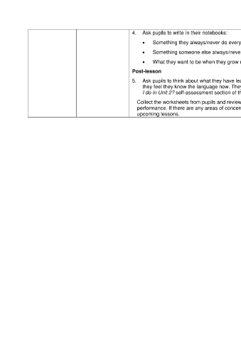 5. Ask pupils to think about what they have learned in Unit 2 and how well