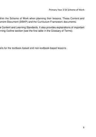 Teachers should refer to the Content and Learning Standards contained within the Scheme of Work when planning their lessons. These Content and
