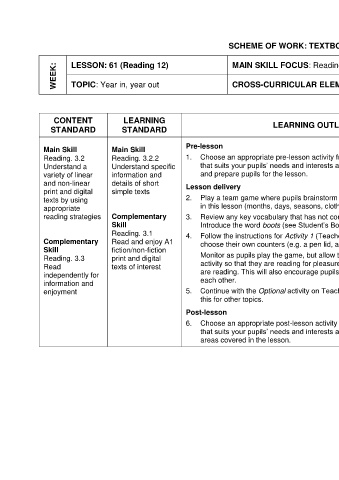 SCHEME OF WORK: TEXTBOOK BASED LESSON (Unit 4)